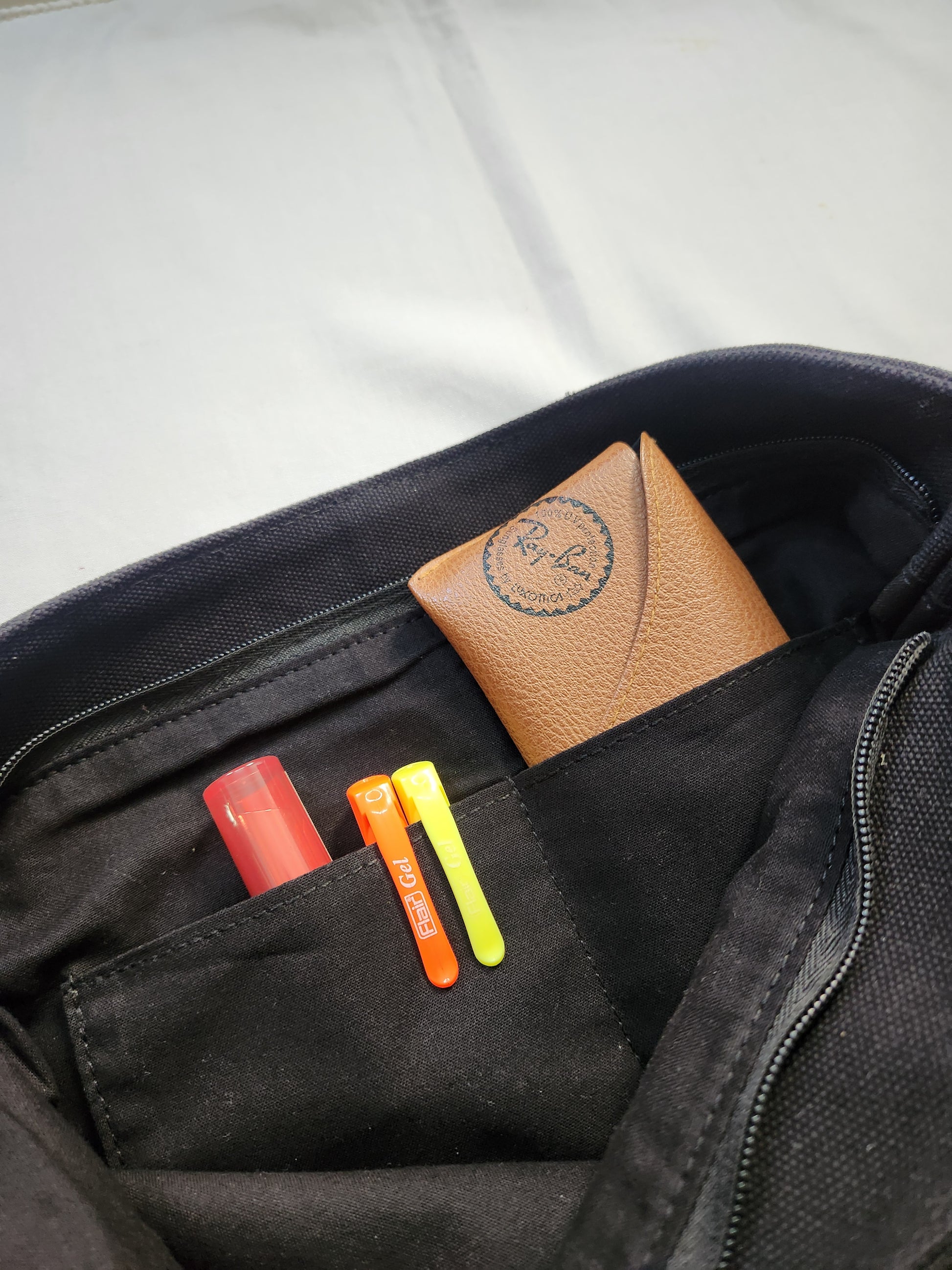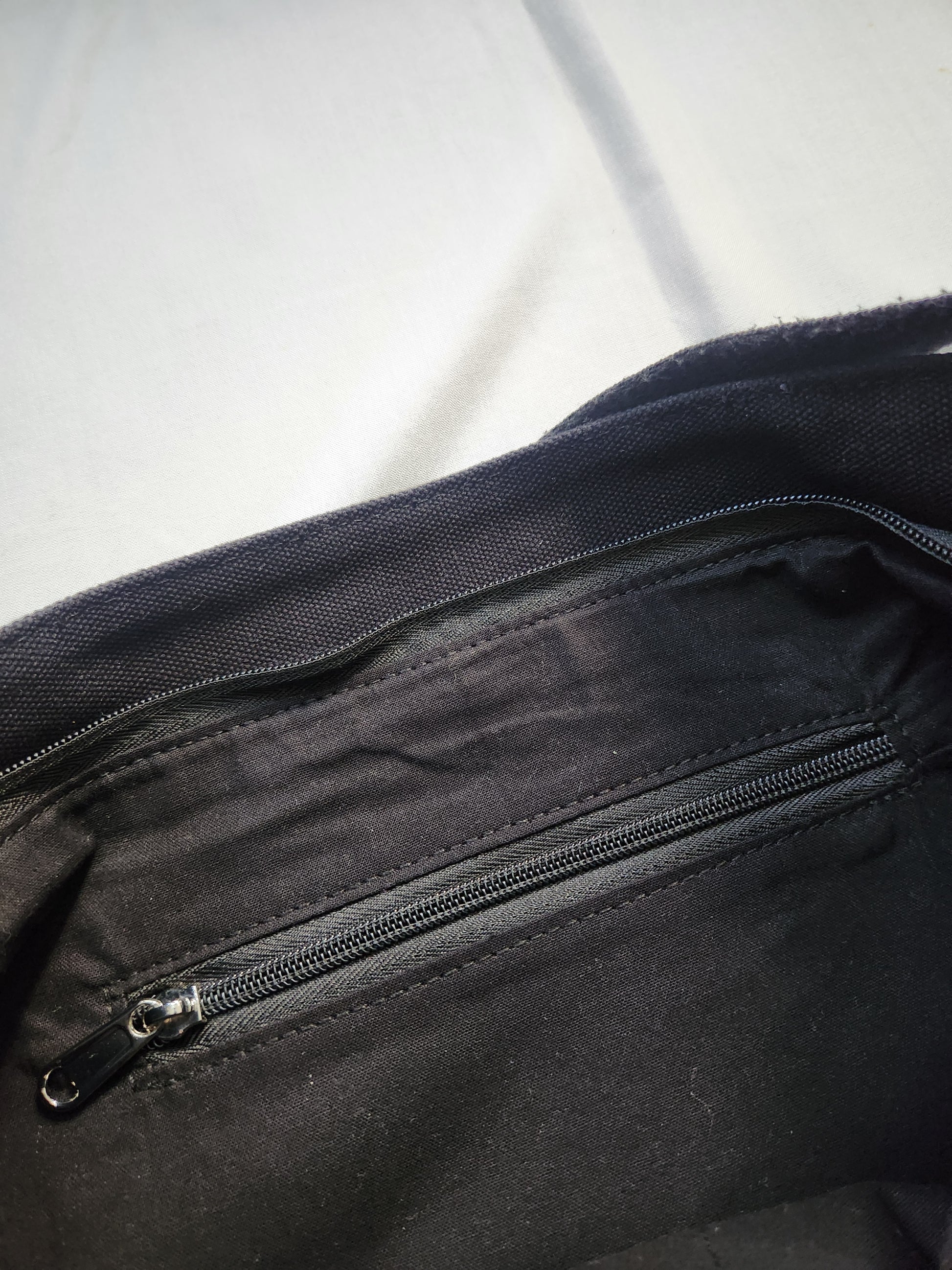 Made from 18oz heavy-duty canvas, this bag has a sturdy, structured feel designed for durability. The 4.5oz cotton lining adds a soft, natural touch, providing a comfortable interior. While the fabric is not waterproof, it can handle light splashes.